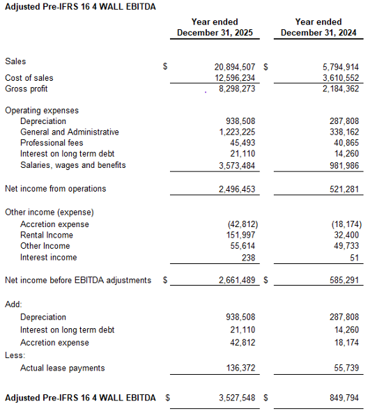 • Fiscal year 2025 Adjusted EBITDA, a Non-IFRS Financial Measure, of $3.5 million compared to $0.85 million in 2024.